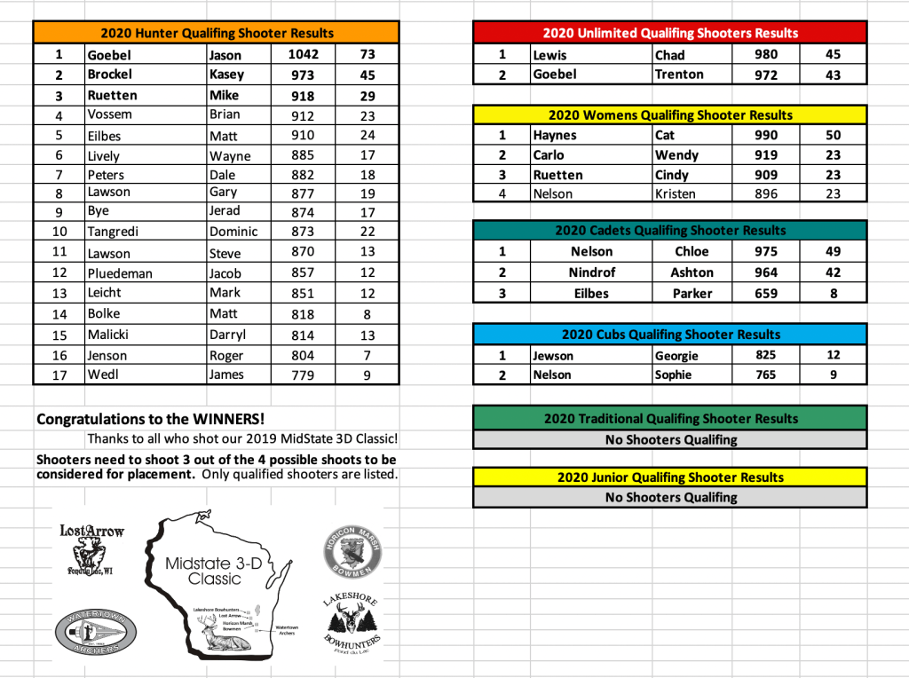 | 4 | Kip Kepler | 8 | 310 | Winnebago Archers |